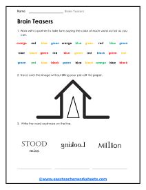 Brain Teaser Worksheets Are A Great Way For Young Students To See, Read And Write While They Think Through The Puzzles At Hand.