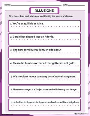 Allusions, the five basic types (common core standards included on speaker's notes), four ways to identify them, examples, practice worksheet. Keith was speeding down the empty road in his mustang and listening to “ smells like teen spirit ” on the. Glitz up your writing with our printable allusion worksheets, rich with a wealth of allusions for the aspiring writers in grade 6, grade 7, and grade 8 to.