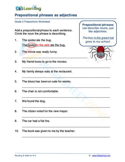 By the fireplace _____ 4. Web here is an example of a prepositional phrase acting as an adjective: Web prepositional phrases worksheet author: