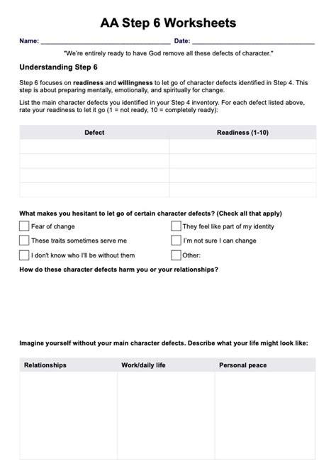 6Th Step Aa Worksheet. Aa doesn’t require that you believe in any specific god. First two paragraphs on page 76.