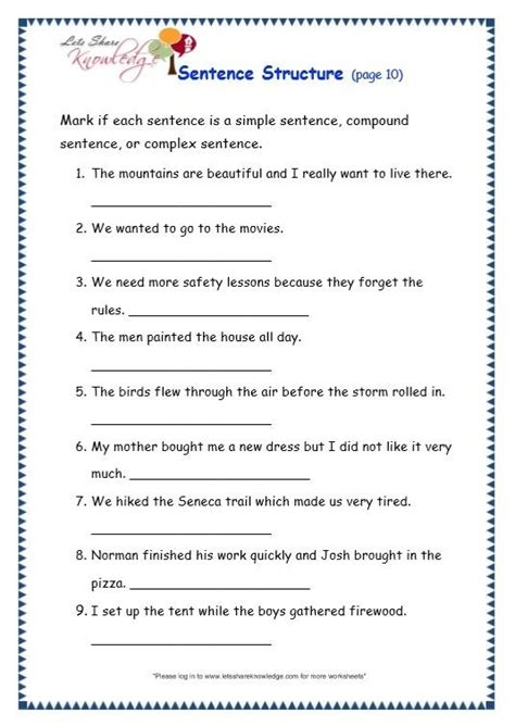 Worksheets Are Sentence Types Simple Compound Complex And Compound, Sentence.