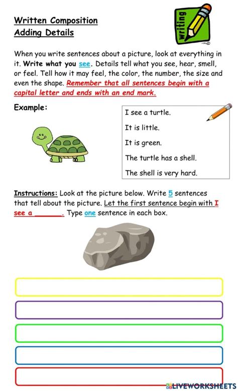 Three kinds of worksheets are included. They set a mood and add interest to writing. Web adding details worksheet this worksheet is perfect for students who need help adding detail to their writing.