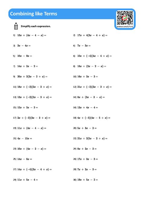 Algebra Combining Like Terms Worksheet. Let’s consider the given example to learn how to solve a question by combining like terms. Choose an answer and hit 'next'.